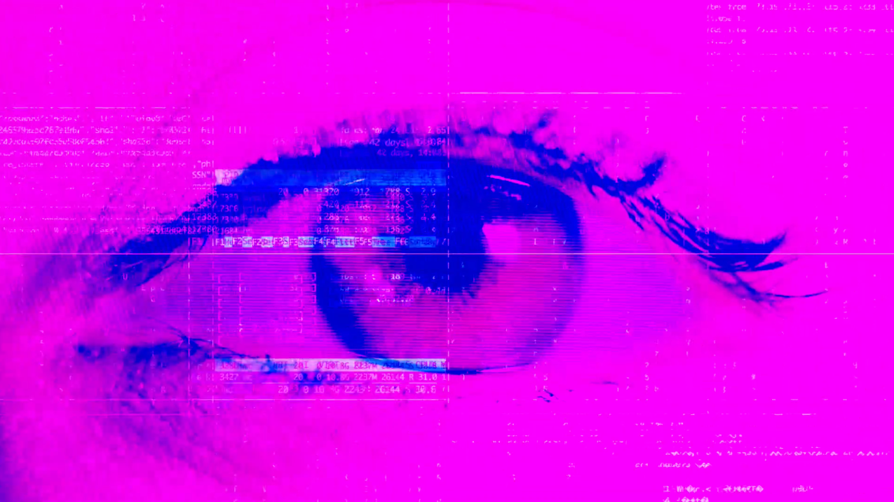 The opening credits focus on intoxicating and contrasting colors, various technological references to programming and computing, and watchful eye motifs, all set to tense synth music. Color manipulation, typographic and graphic choices, and glitch video treatment come together to convey the dark and suspenseful tone of the technological thriller to-be.